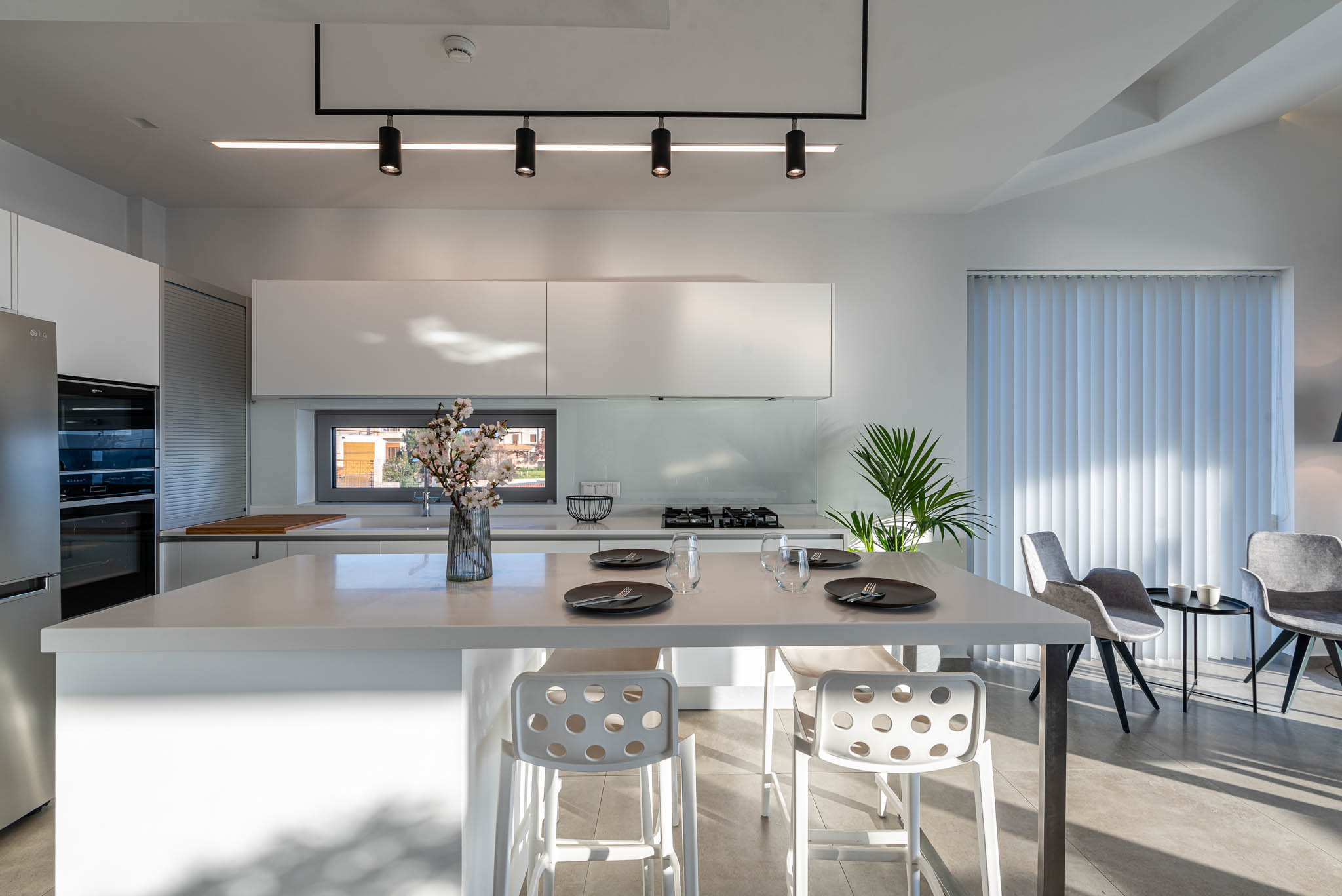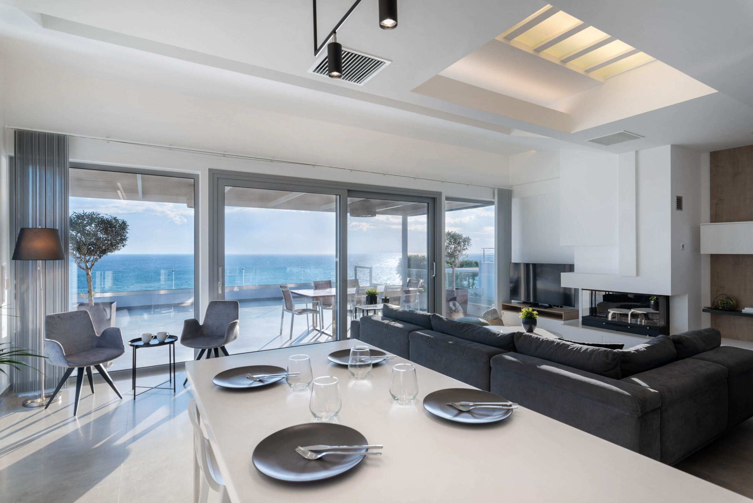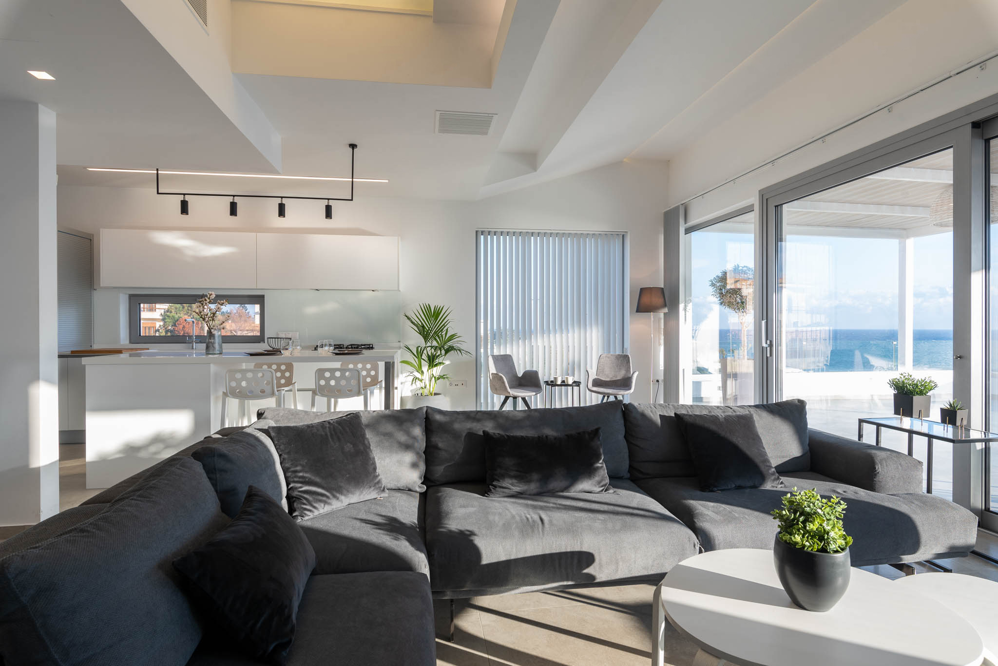 Step into the heart of relaxation as you explore meticulously designed interiors, where clean lines and neutral tones create a harmonious atmosphere. Spacious living spaces are bathed in natural light, emphasizing the villa’s connection to the breathtaking seaside landscape.